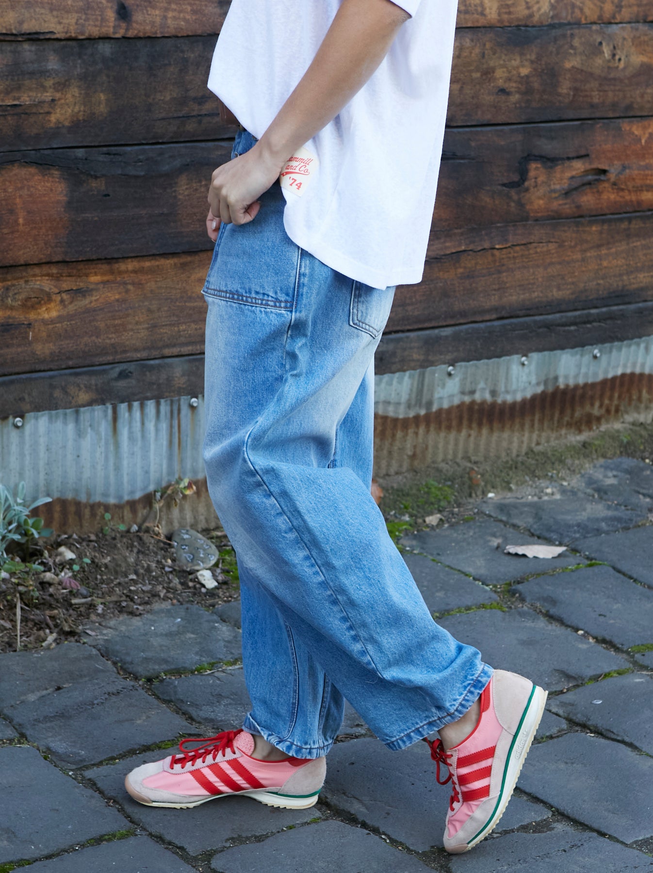 Hammill & Co. Our carpenter style jean is here in a non-ripped darker denim with slight stonewash distressing.