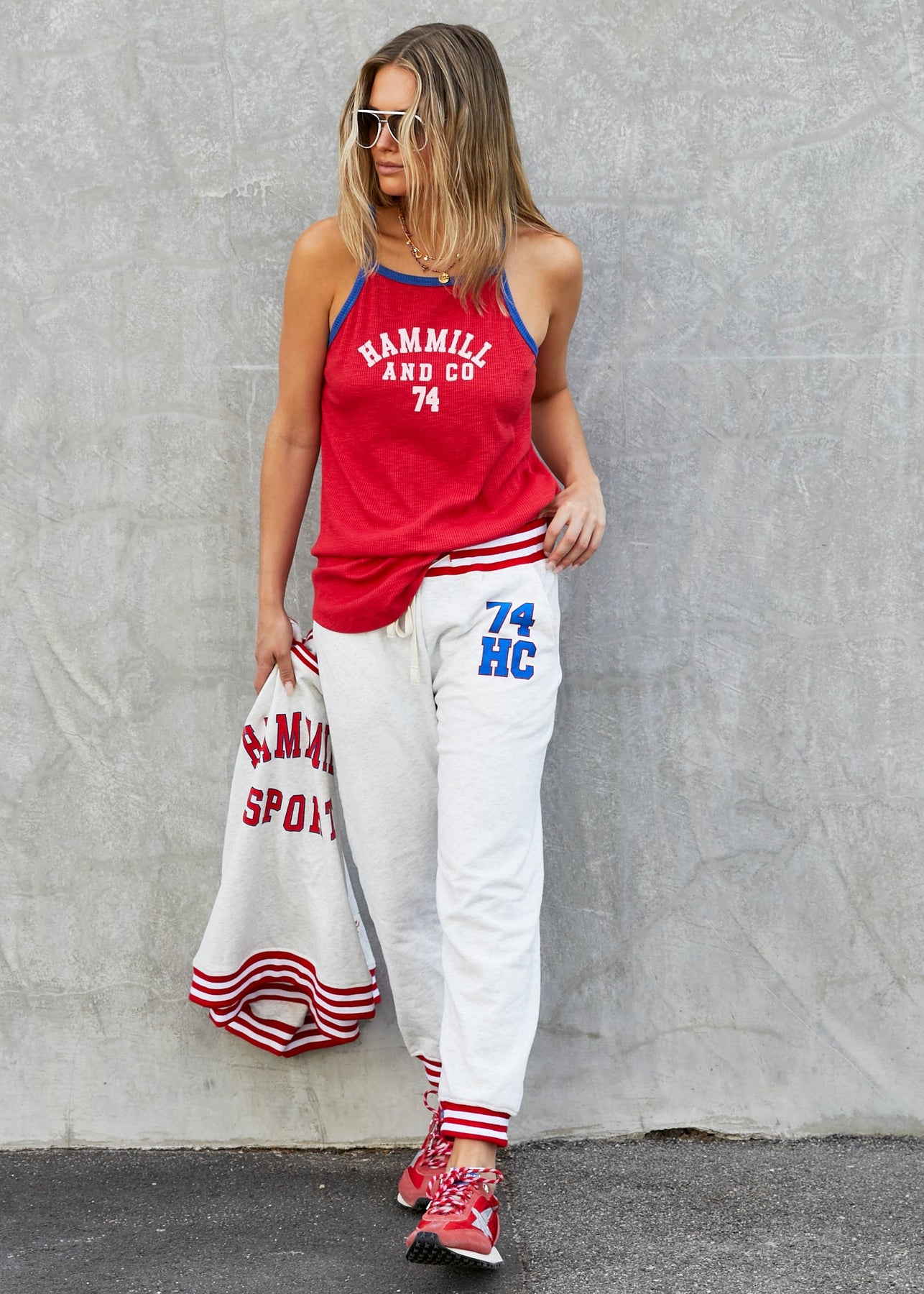 Sporty rib tank with Hammill Sport on the front. Longer length which is great for layering or wearing back with leggings.