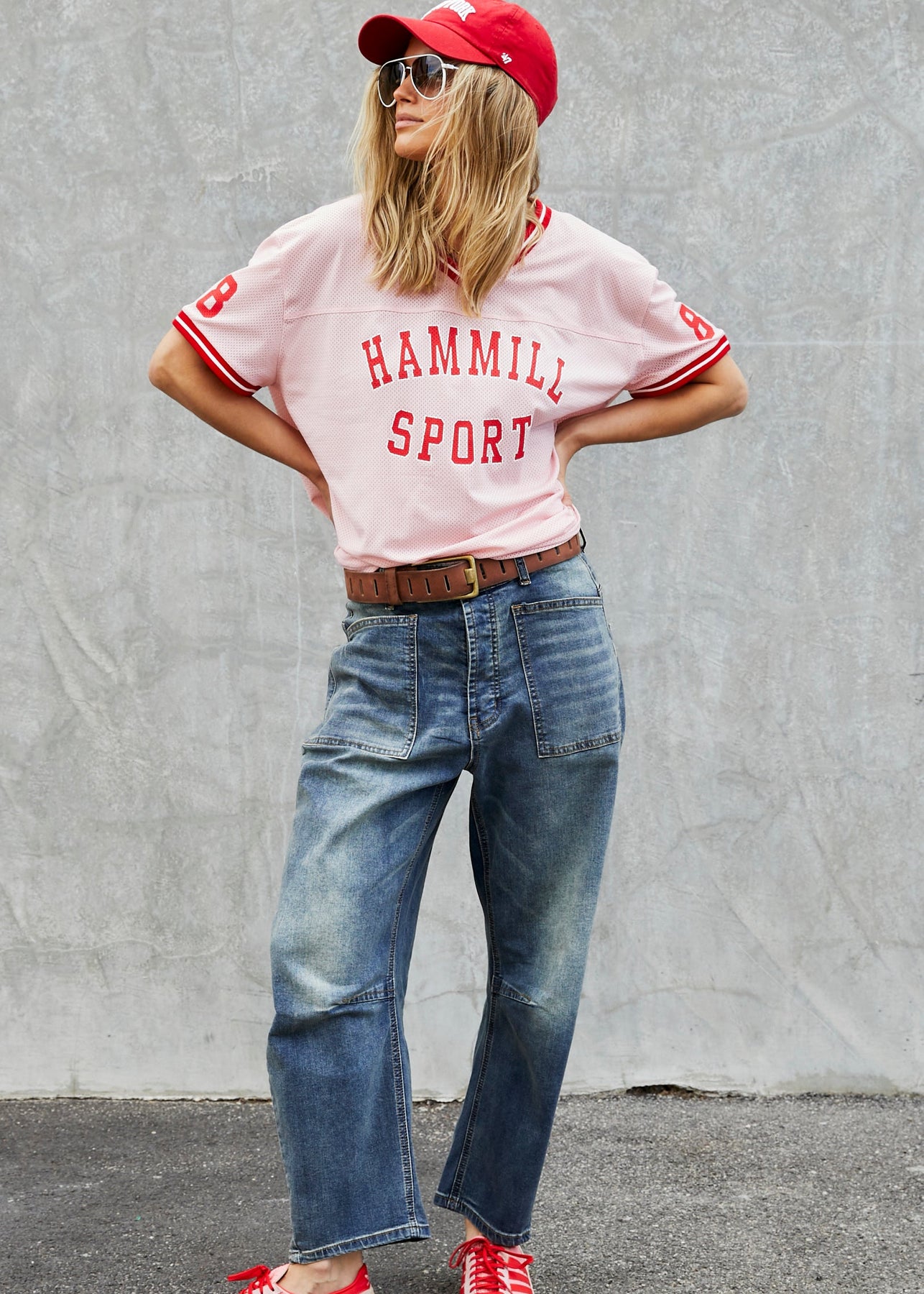 - Slouchy utility pockets on the front and back