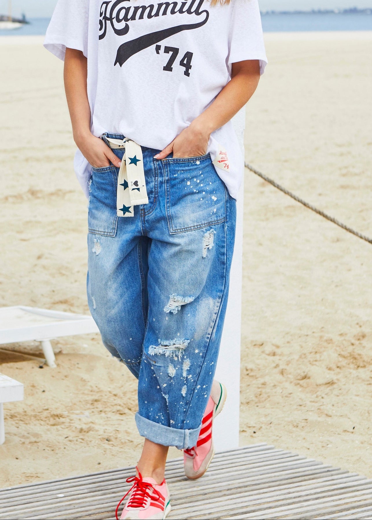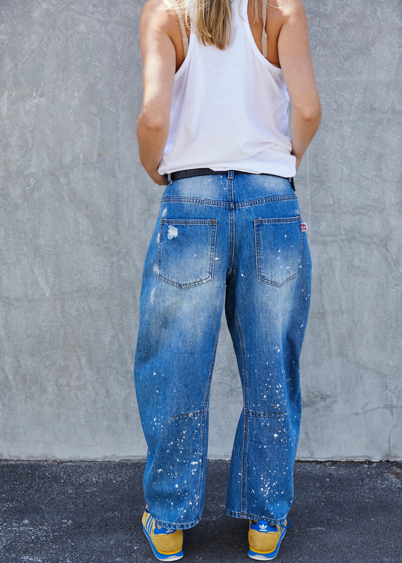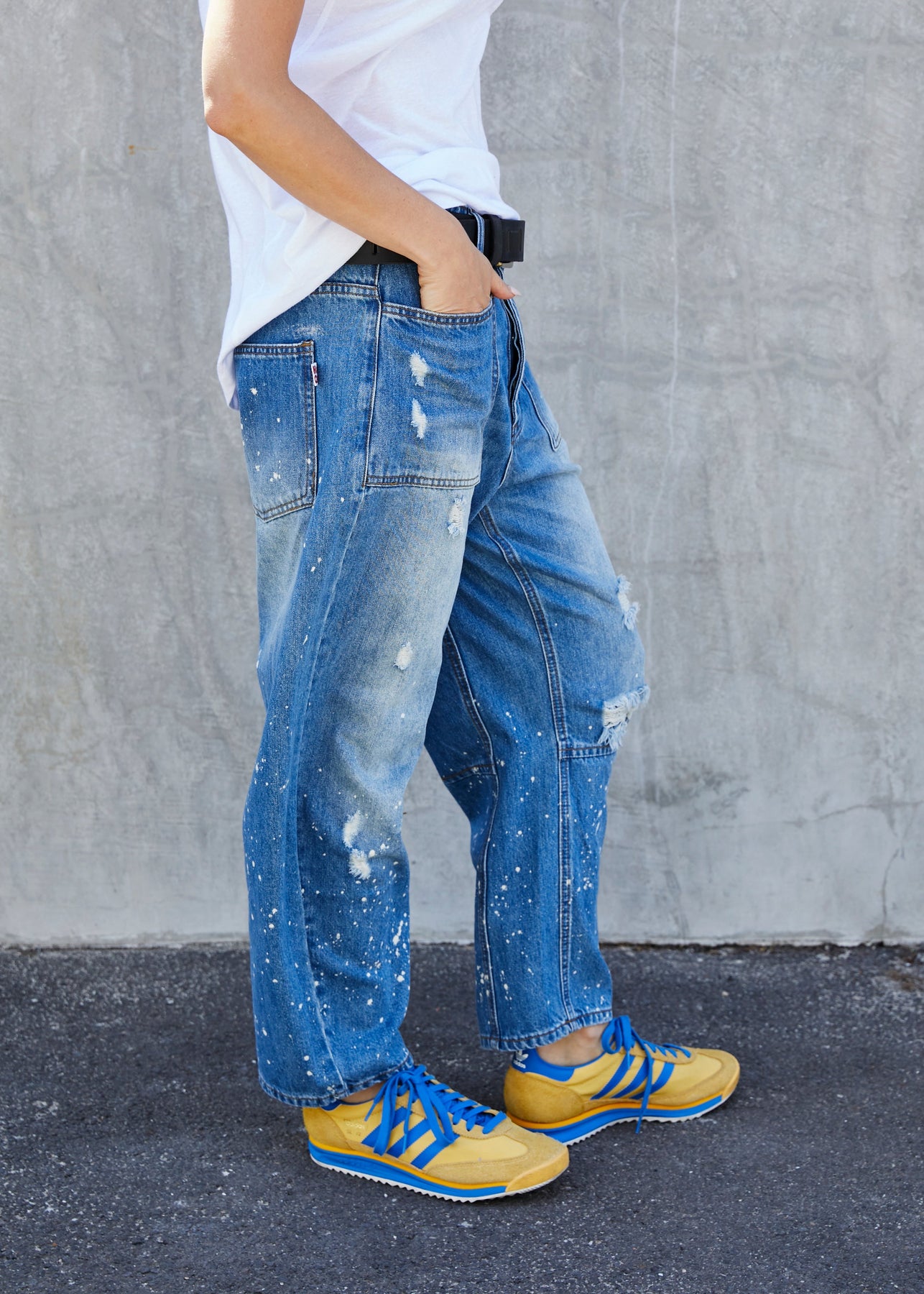 - Subtle paint splats, rips and holes for a lived in, vintage look.